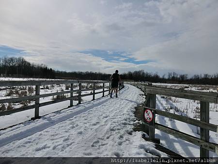 這兩天都是零上六、七度,有些人把握機會,乘雪化盡前,再多享受一下滑雪的樂趣,見到一位仁兄在暖日下,穿著無袖衫和短褲滑雪,倒也希奇,頭一遭碰著!哈!