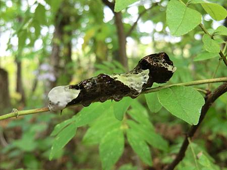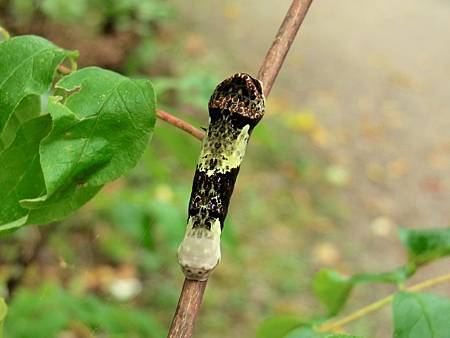 昨兒在林中,又從一位背著照像器材望遠鏡愛好自然的長者,得識這毛毛蟲(Giant Swallowtail caterpillar),一動不動像是要冬眠似的(數數有八隻),如能熬過寒冬,來春則是一隻美麗的Giant Swallowtail Butterfly (金鳳蝶 寬約6吋)!