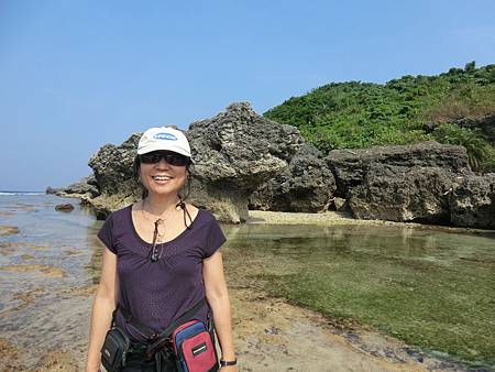 那兒的海水顏色,碧藍的清澈,水很溫暖,很多人玩浮潛,我們玩泡腳;在花瓶岩見到了一隻碩大的玳瑁,隨著海浪探頭,雖只看到頭,但可想牠那驚人的體積!