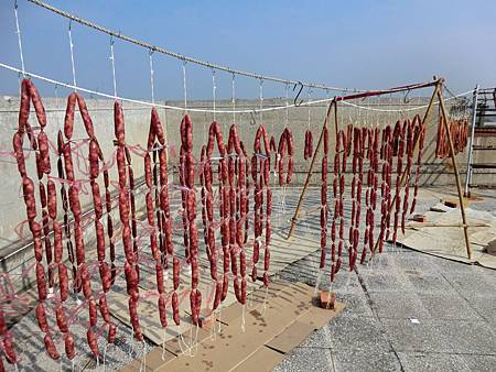 好久未見如此陣勢了,曬在我們頂樓納陽,想到有些調皮的小學男童學們曾說過,幼時如何如何地偷眷村中媽媽們灌的香腸!哈哈!