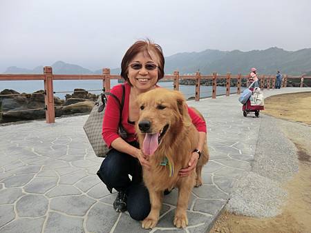 在潮境公園區,見到一隻被主人精心調教胖胖壯壯毛色亮眼的黃金獵犬,合照了一張,活像是我養的,哈!