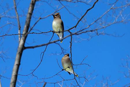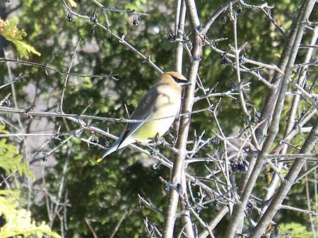 回到家第三天才開始出門走路,從多彩到黑白,好在有純淨清新的空氣彌補!第一次走回來,臉色發青,顯然心思哄不了帶著時差的身體,不過哩,倒是因著提早時段走,遇著了不太常見的黃連雀(Cedar Waxwing) ,成群的在覓食,原來是沒搞清楚牠們的時刻表!