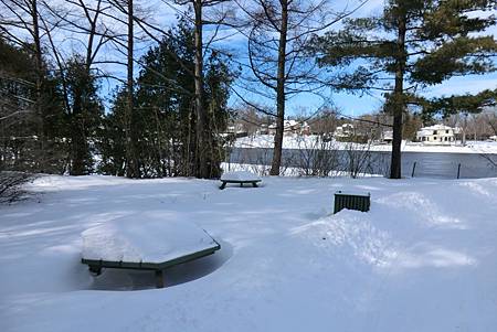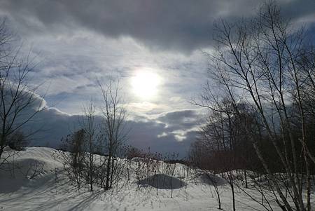 昨天到今早,整整颳了24小時的風雪,下了20公分白花花輕飄飄的乾雪,從灰天暗地到藍天白雲,真是變臉如翻書!風雪天對上班人是一大攪擾,因每次定會大塞車,記得有一回,原本只需50分鐘的下班車程,攪和了近四個小時才回到家,一路上耽心油會用盡,又憋著不敢想廁所,真是耐性大考驗!現下可好,不痛不癢地隔窗觀看,只覺茫茫飛雪天上來,挺美的!午後,迎著陽光,踏著粉雪,累時,想能雪上飛了無痕該多美!哈!