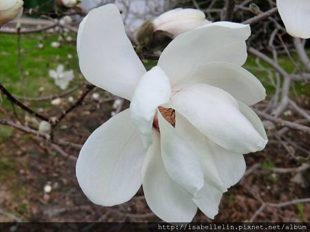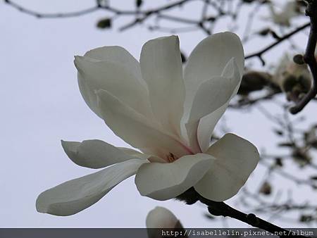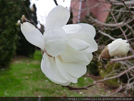 附近一棵兩層樓高的白色木蘭花(辛夷),趕早綻放送香了,鄰家粉色的還「春眠不覺曉」懶懶地睡在苞裏,亦或是正努力長成中,可不好數落委屈它了,哈!