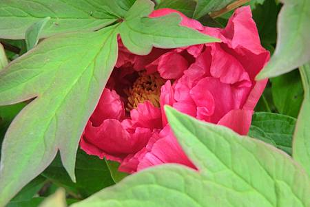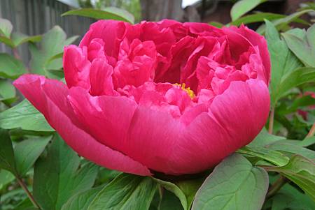 一朵、兩朵,牡丹開始了,可憐這株牡丹在兩棵四竄的大樹跟間奮力成長,身量年年不見變動,施的肥想是都被兩旁的壯者搶了,幾天前更見一帶花苞的老枝被松鼠折斷了,可愛的小胖仔成了渾球了!朋友家新種的百來棵鬱金香球,也被松鼠們刨食掉三分之一,惱的女主人埋下大蒜,心想總不會被挖了吧!哈!照舊被翻掘,氣的沒咋!