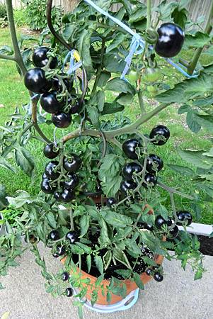 這Russian種的紫番茄,像葡萄般成串地,挺美的,口感清脆甜,不錯!