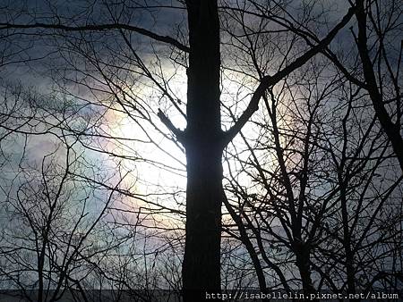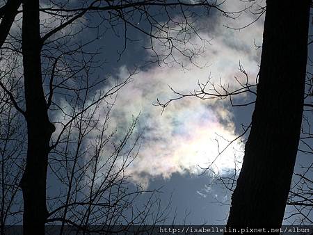 03/26照得,03/27的留言:「最近,常會看到彩雲飛,雖是零零散散的, 卻也挺有風味,每當艷陽天時,稀薄的雲層,飄飛過太陽時,某種角度,就會見著,角度過了, 就失了色彩,放一張給大夥瞧瞧(不是很傳真) 」