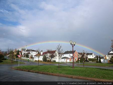 或許彩虹雲比彩虹更不常見,然彩虹完整的半圓,也是不易見,印象中有三次,一次在紐西蘭南島海邊,一次在自家門口(如圖2012/10) ,另一次是開車在高速公路上,兩道彩虹,一深一淺,完美的橫跨公路兩側,至今記憶猶新!