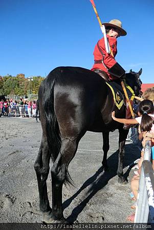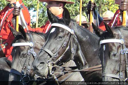 09/28觀賞了家附近一場加拿大皇家騎警(The Royal Canadian Mounted Police)的馬隊表演(The RCMP Musical Ride),此隊每年走訪兩省(加拿大有十省) ,擇地演出,今年是魁北克(Quebec)和Alberta省,從5/18到10/10,免費演出,但鼓勵觀眾樂捐,以支持地方慈善事業,大約20多年前,女兒還小時,帶她去看過一次,現下老來再看,是想再回味那記憶中烙印在馬臀股上一片亮麗隱現的楓葉標誌,及那32騎皇家俊馬,全程約一個多小時,馬術表演約半小時,來瞧瞧!