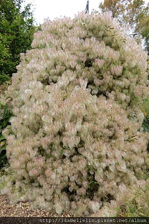 能想像這是一種鐵線蓮(Orange Peel Clematis)花開後的種子頭嗎?!一團柔軟大毛球,約六呎高,著實吃了一驚,活像隻大捲毛狗!