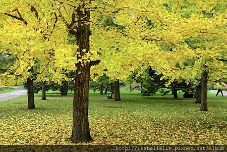 自從看了「英雄」那場銀杏林中的打鬥畫面後,對銀杏樹開始留意,希奇那純然一色的黃,和這兒漂亮的層次秋黃不太一樣,或許物以稀為貴,總想要眼見那片黃!