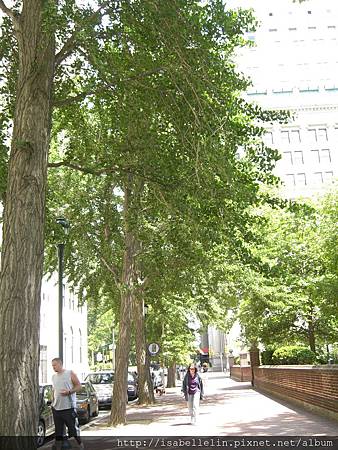 第二次見銀杏,是2009年在費城(Philadelphia) 參加教會特會時,一街的一邊,一排漂亮的銀杏樹,一溜綠!