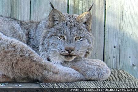 這隻美麗的山貓,第一回合沒見著,第二回合,順著遊人的眼光看到在一角落裡懶睡,第三回合,放眼遠瞧那原懶睡的角落,不見了,一收眼,喲!原來好端端地正立坐在近跟前,用一對有思想的眼睛盯著人瞧;真想踢自己一腳,眼睛長到哪兒去了,趕緊一面輕言讚美一面對準鏡頭,但牠已不再正眼瞧人了,沒逮到那眼神,可惜!也別太貪心了!能見牠睡睡醒醒,梳毛打理,已是開心!哈!