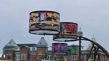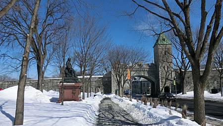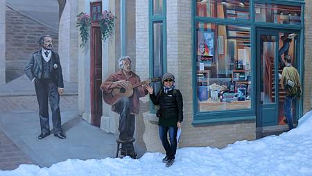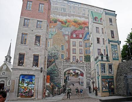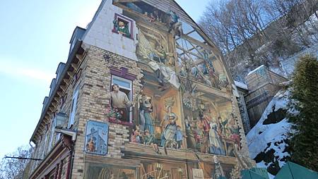 一副是 The Mural of Quebecers,五層樓高,由下往上,春夏秋冬,其上畫有15位歷史性人物,這張來自網路(自己照不全,因有一大垃圾櫃擋在左下方):