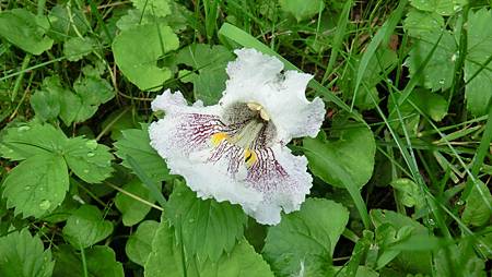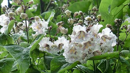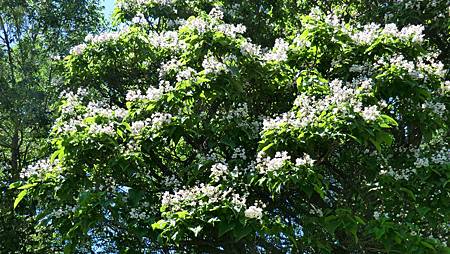 又學認了一樹,梓樹(Catalpa bignonioides),是被它光燦的花吸引,在一條車輛往來較頻繁的沿河馬路邊住家院內,雖也曾偶爾會走經此處,因沒碰上花開期,也就沒注意,不識的太多了!倒是趕得巧為關鍵吧!