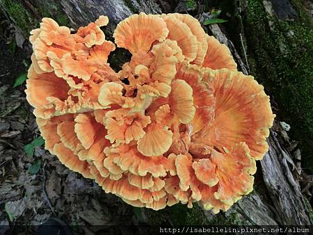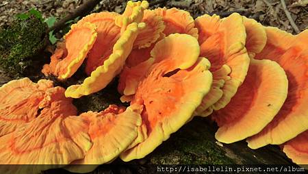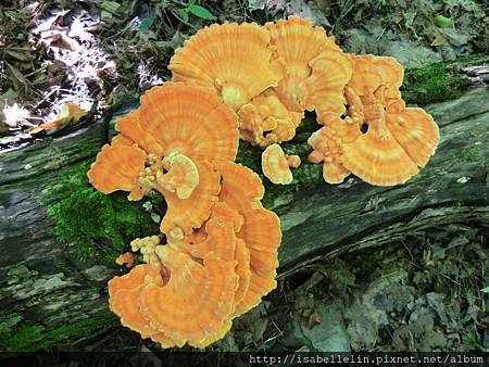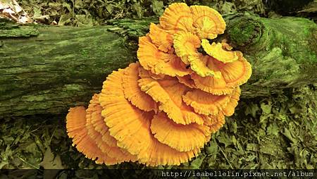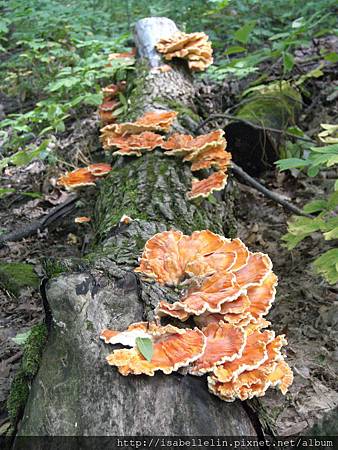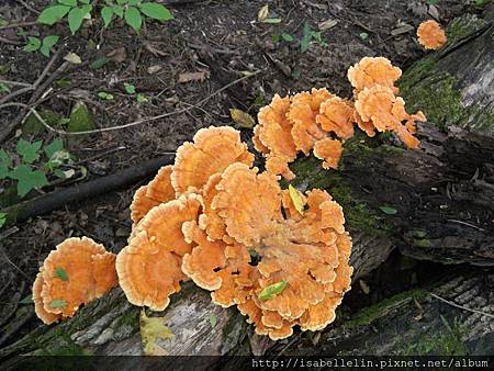 2008年第一次在林中見這大型野菇(Chicken of the Woods),除讚嘆它的奇特外,心想如此色彩豔麗,定是毒菇!沒料網訊說它鮮美如雞肉,素食者的美味,算是名符其實了!