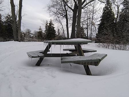前夜(02/28)又下了冰雨,晨起,瞧那冰亮亮的路面,想今兒別走了,