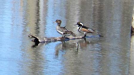 再來是Hooded Merganser(連帽秋沙鴨),雖遙見過幾回,但4/19的這場秀(如下),倒是第一次,算是不棄不捨地向林地報到的小賞賜了!
