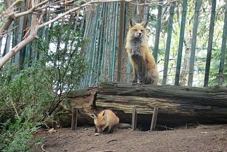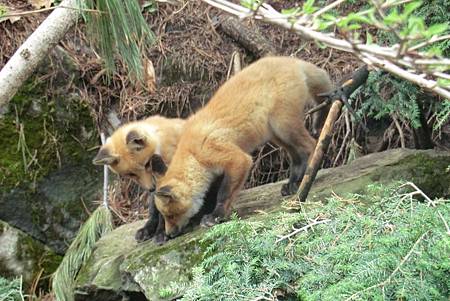 昨(05/08)主日聚會後,到不遠處的植物園,想看看那兒的木蘭花開狀況,天陰雨,花一般,然竟在較隱密的杜鵑園見著狐狸一家四口,媽媽帶著三隻寶貝,瞧那清秀佳人般的苗條媽媽狐,想必養家辛勞吧!初望還以為是小黃狗,正納悶怎會有狗在園中呢!