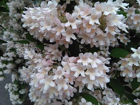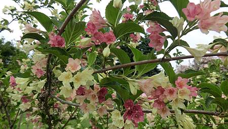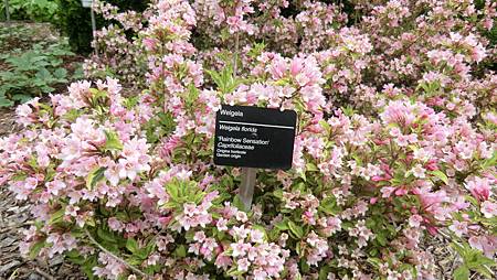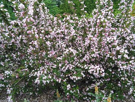 然昨兒在植物園見的錦帶花,非但樣多,花也漂亮,再加上另一種同屬忍冬科(Honeysuckle)的Beauty Bush(蝟實),正值盛開,異常的亮眼,看的讚嘆不已!