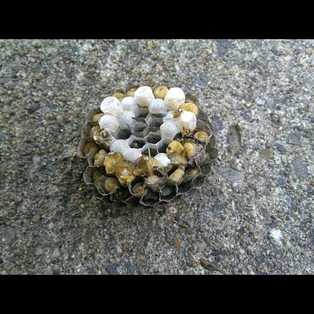 2014年曾從屋簷下打落一個像小西瓜大的蜂巢,自那以後,有事没事都會抬頭檢視一下,是否不速客又來了,太大的蜂巢,處理時挺緊張的!日前又發現了一小巢,趕緊叫老爺清除,看著落地的殘巢,想:殺生之罪應不在我,是你不該在此動土!