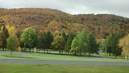 10/08~10/10感恩節三天長假,隨著教會20多人去東邊New Brunswick省的Fredericton市參加特會,雖知路途遙遠(單趟車程要八個多小時),但因期待著能看看沿途的秋景,故也帶著些許猶豫上路了!沒想到一路紅橙黃綠,美的不知該如何述說!滿丘自然豐潤花團錦簇的繡圖,滿野自由伸展多彩多姿的生態,綿延數百公里,太大氣了!也難怪,這條路是緊鄰美國秋色了得的緬因州,理當同美!一向認為自家方圓百里的楓紅已夠美了,就沒特意去走訪它處,這想法得更新了!