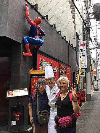 吃食,原則上沒啥難,按圖劃押,最好吃的自然是神戶牛排,在往姬路城途中,特先在神户下車,吃吃牛排,廚師在跟前炒做,精心指點,肉肥且嫩,是好吃!吃的我們讚不絕口,廚師樂的臨別時要求合影留念,請我們幫忙推薦!