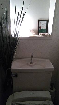 大板住宅房設計的省水省空閒的馬桶,外露的水籠頭,在補充水時,也可一併洗手!