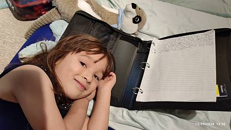 小傢伙更成熟了,離別時會哭,這期間她獨自寫了一小段文字,雖然字母拼錯了很多,但意思可見,大大的驚訝了紋纹和我,剛滿六歲的小娃!