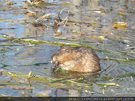 八月初,遇上了這隻麝香鼠(Muskrat) , 看牠忙的不亦樂乎,也吃的不亦樂乎,胖胖蓬蓬的,很有趣!