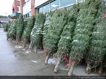 聖誕樹也出籠了,老外很多人喜愛立真樹,因它有種松香,每次經過這些聖誕樹時,總會駐足多吸它幾口香,但也覺挺浪費樹的!剛來此時,每年都會立樹(以經濟著眼用假樹)擺飾,女兒長大後,也就不再熱衷了,上回立,還是2007年君君從英國來此渡假時,大夥尋熱鬧,又搬出來攪和了一番!那年還烤了一隻火雞!
