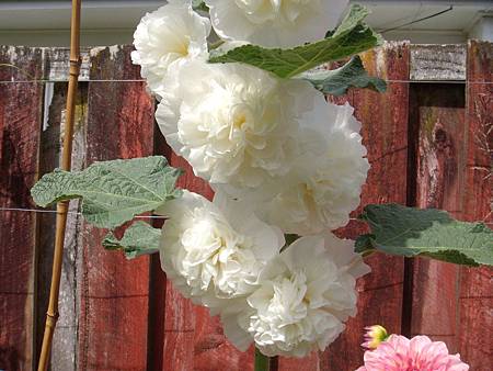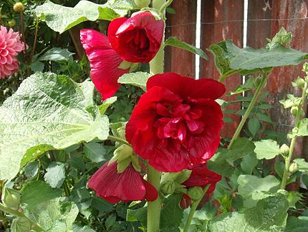 近日來更有複瓣蜀葵(Hollyhock,兩公尺來高),也是令人驚異不已,美呆了!